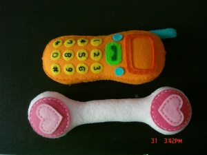핸드폰이랑 사은품으로 받은 딸랑이